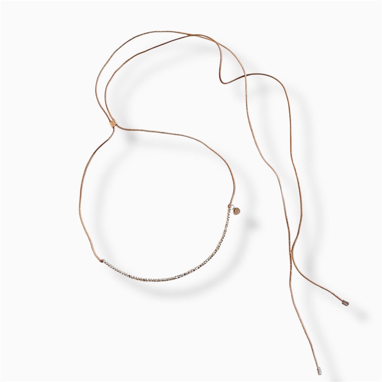 Suitable for all body shapes, a crimp bead slides along the cord to adjust the choker to the desired height.