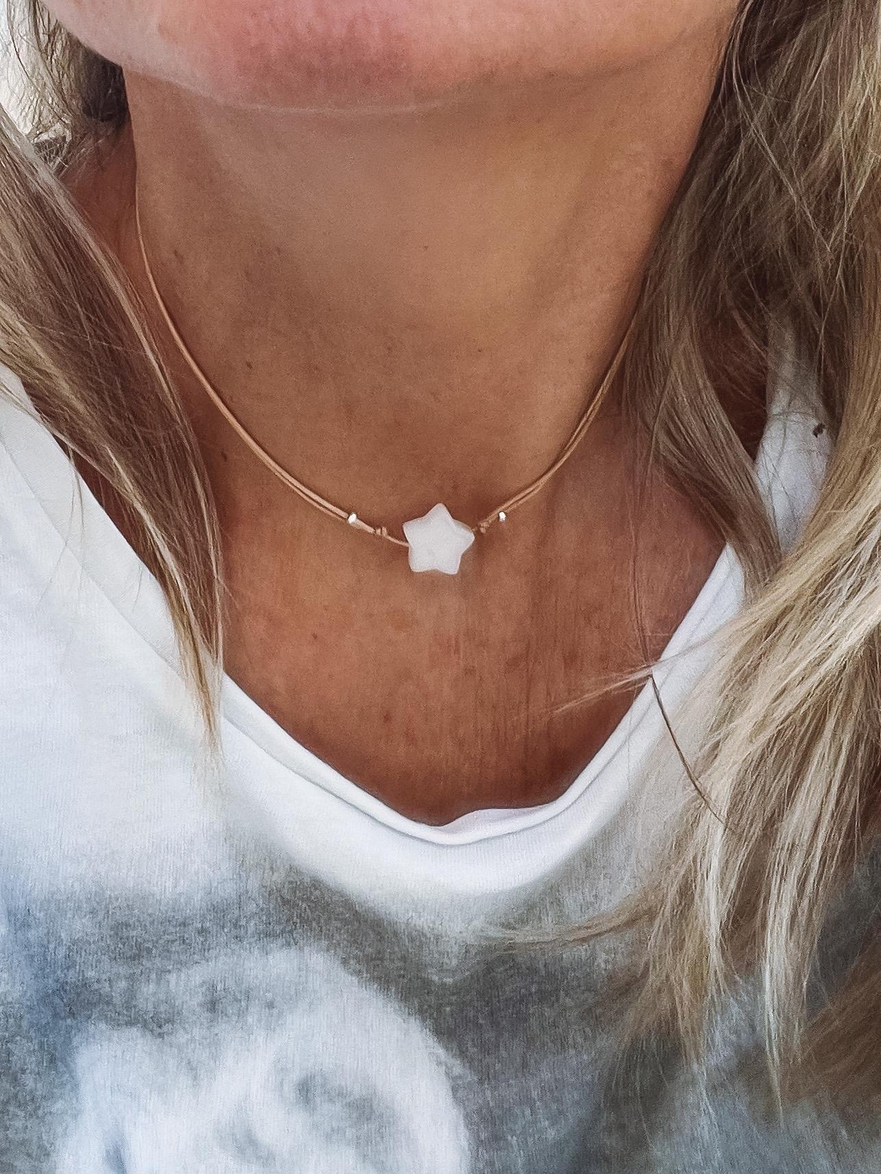 The necklace is made of an adjustable nylon cord, several colors available, to discover in the drop-down menu when ordering, smoked white glass star and small 925 silver beads. Thanks to its two sliding knots, the necklace adapts to all body shapes, ranging from 34 cm to 40 cm. ───── ⋆ ─────