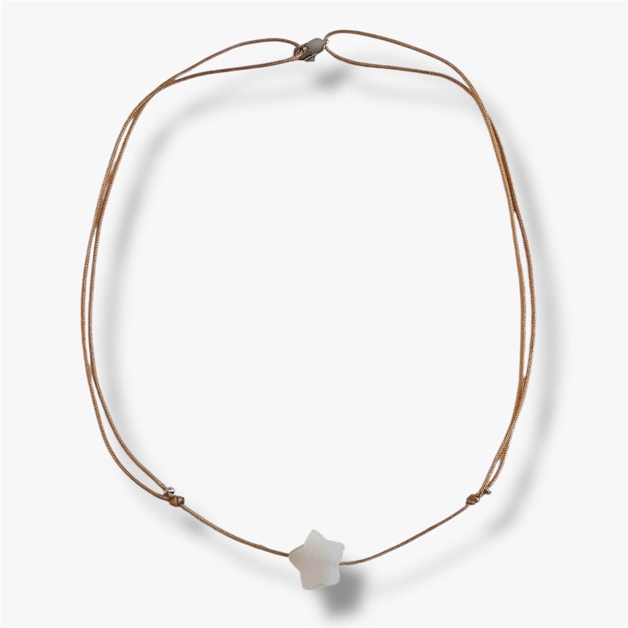 Choker with sand-colored cord, a smoked white glass star and small 925 silver beads.