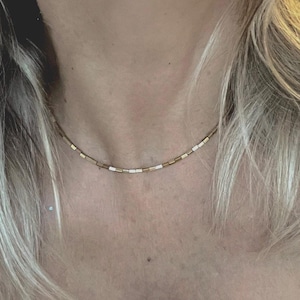 The necklace measures 35 cm and can be extended up to 40 cm, thanks to the two sliding knots on each side.