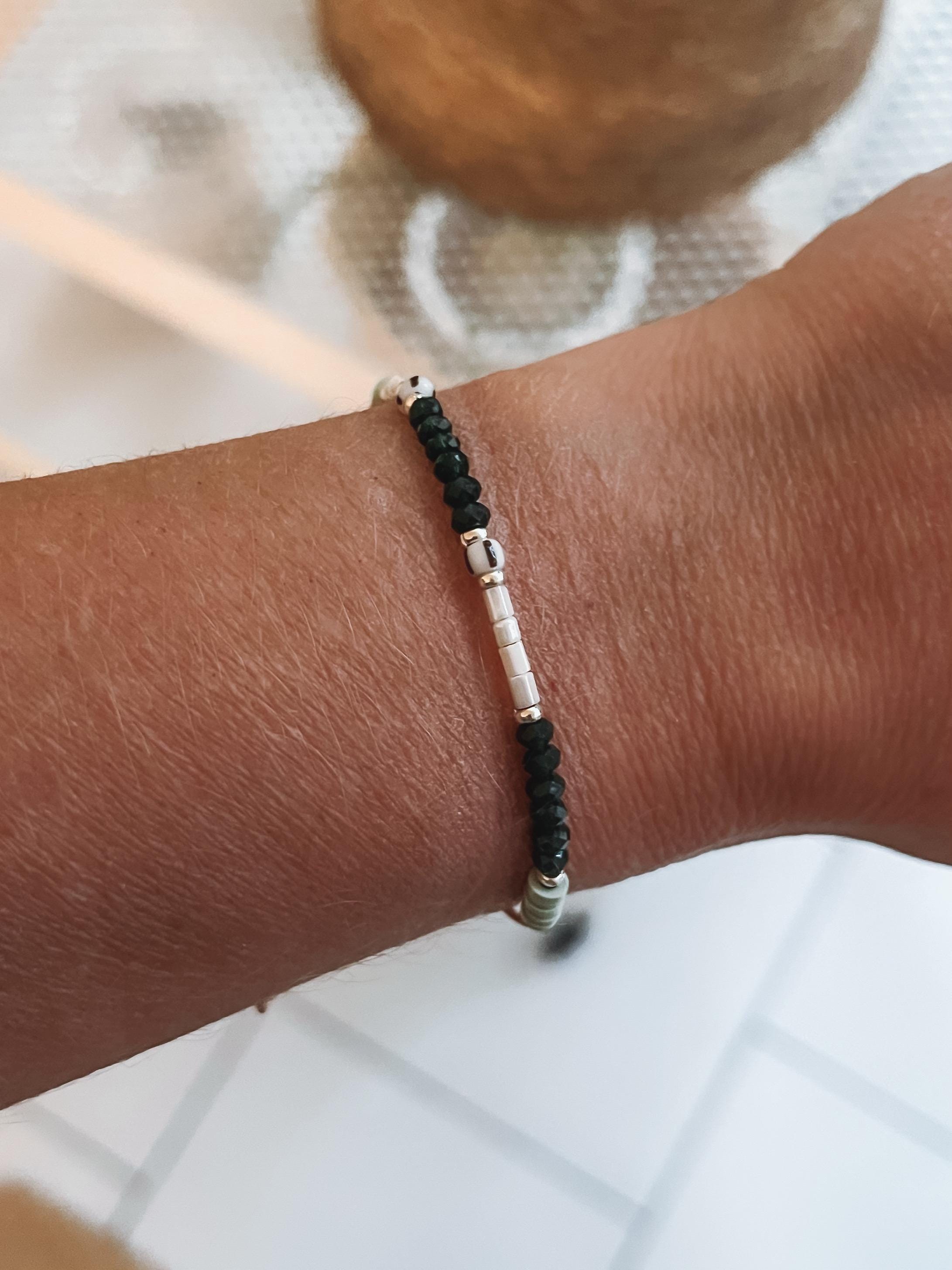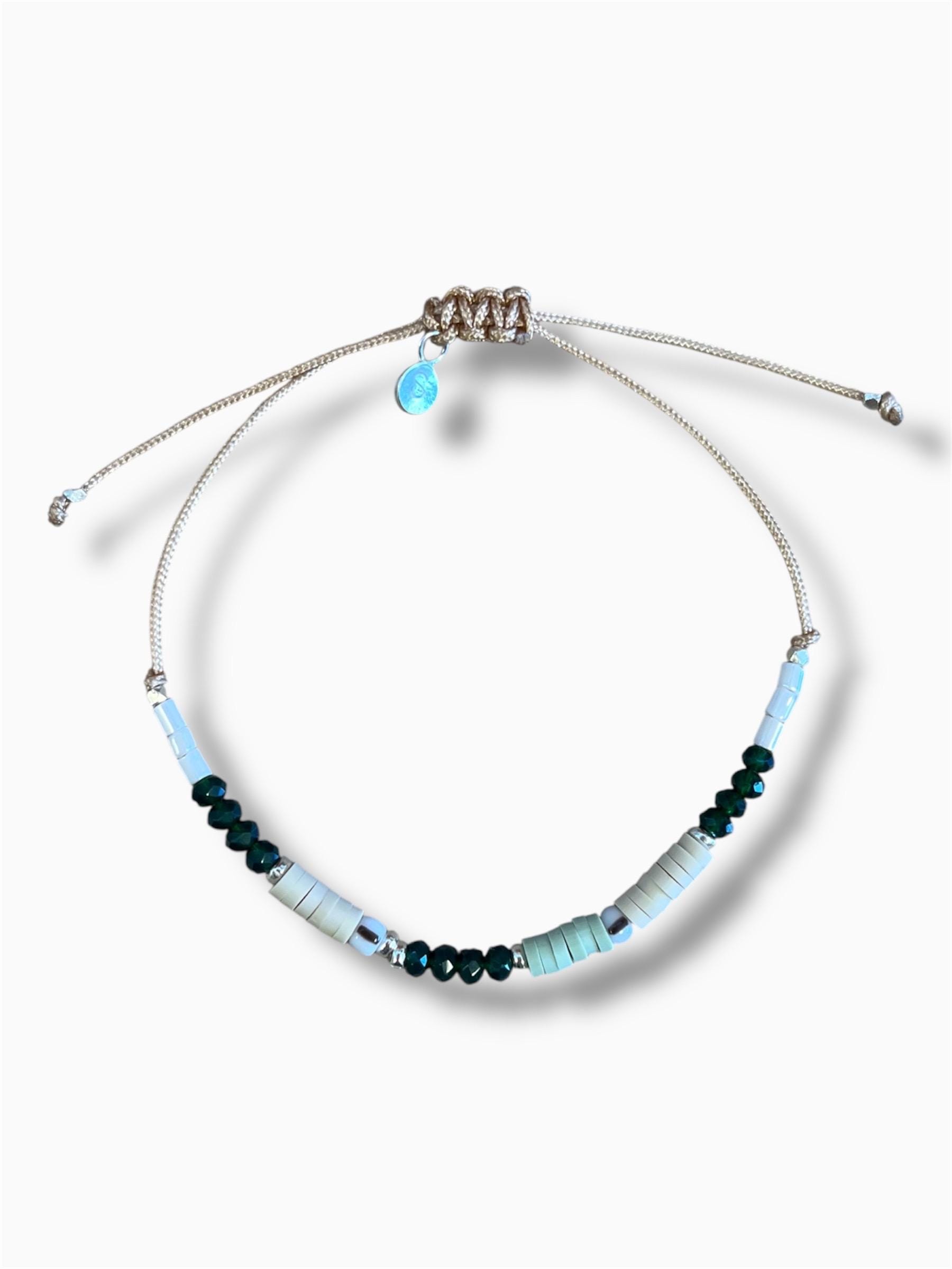 Bracelet Grigri d'Am - Beige et vert bouteille.