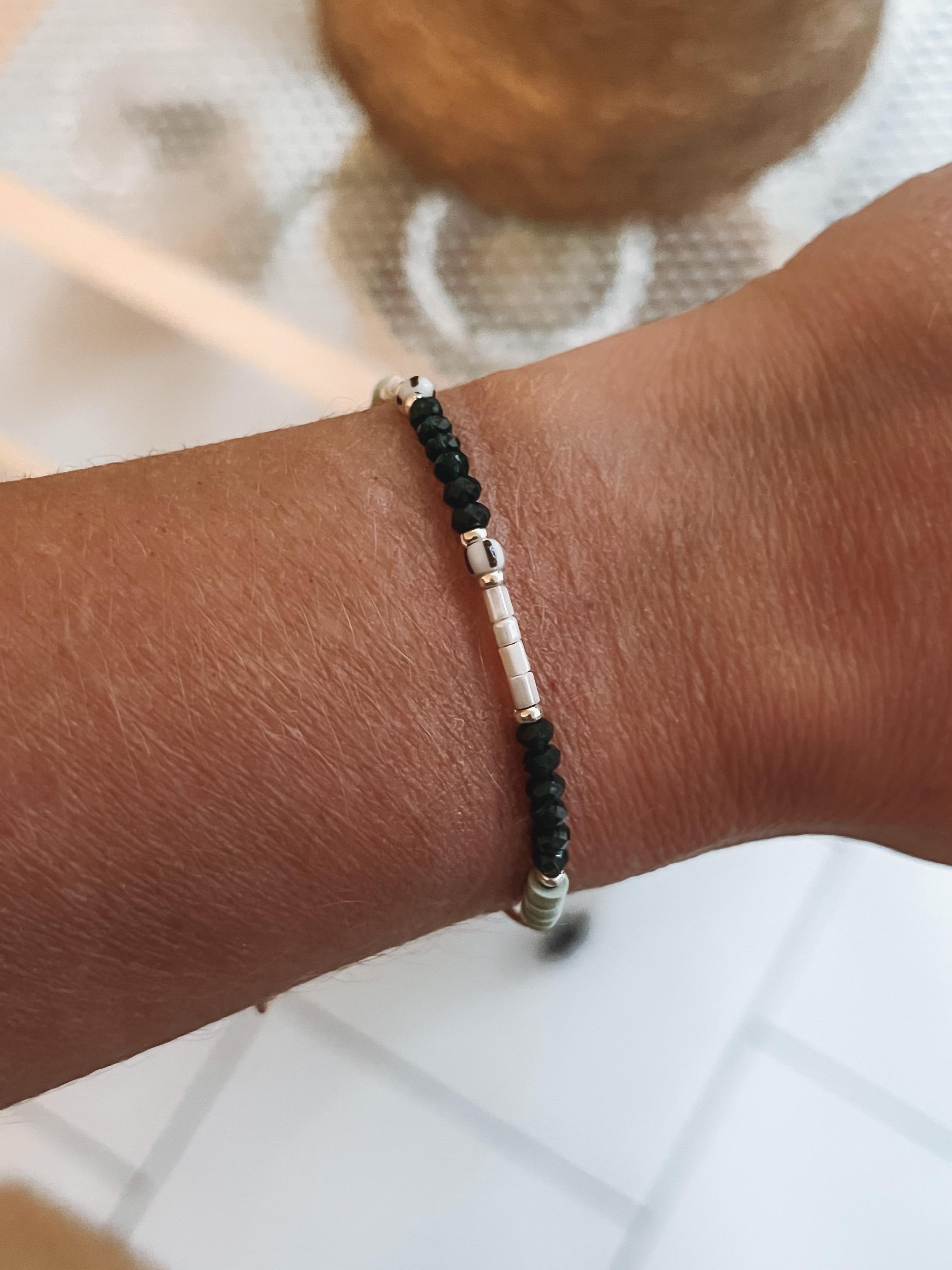 The bracelet adapts to all body shapes thanks to a sliding macramé knot.