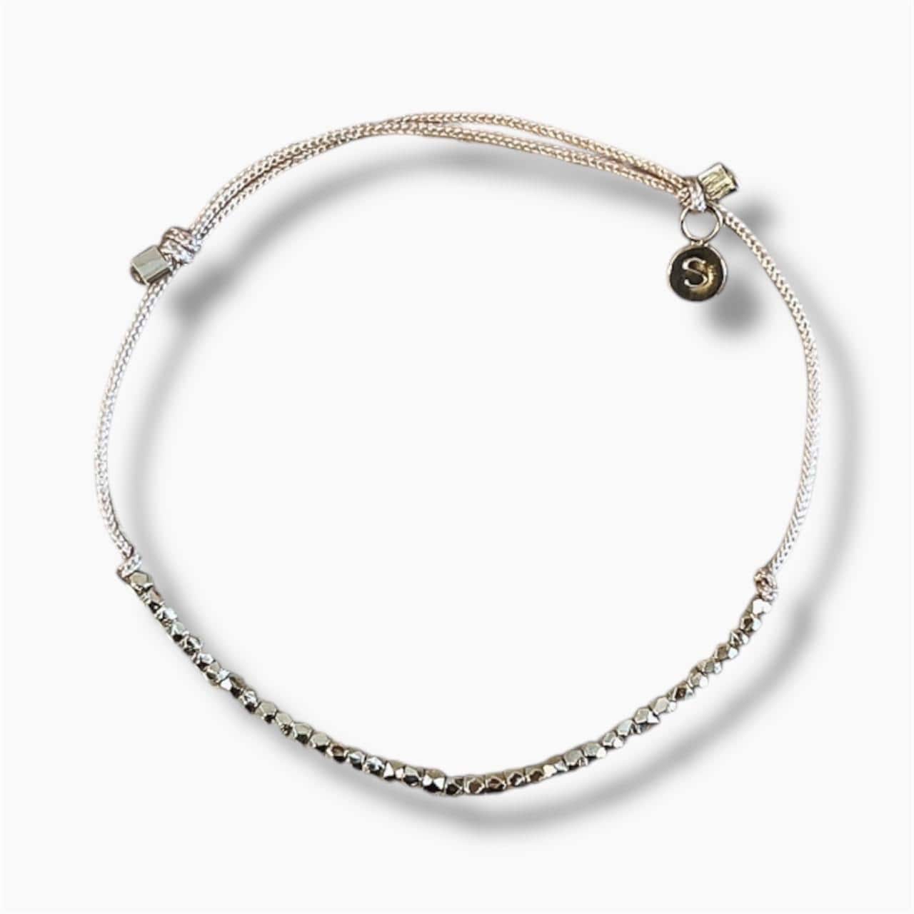 Nylon thread on which mini faceted 925 silver beads are slipped. You can choose the color of the cord when ordering, from the drop-down menu.