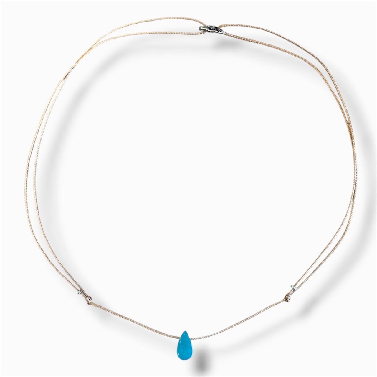 The necklace is made up of an adjustable nylon cord, available in 3 colors, to be discovered in the drop-down menu when ordering, a drop-shaped amazonite stone and small 925 silver beads. Thanks to its two sliding knots, the necklace adapts to all body shapes, ranging from 34 cm to 40 cm.