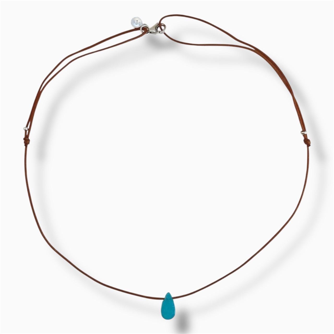 Let yourself be seduced by the simplicity of this choker with a nylon cord, adorned with two small 925 silver beads and a central drop-shaped amazonite stone. This minimalist and delicate necklace is designed to enhance your neck by adding a touch of natural softness thanks to the amazonite stone.