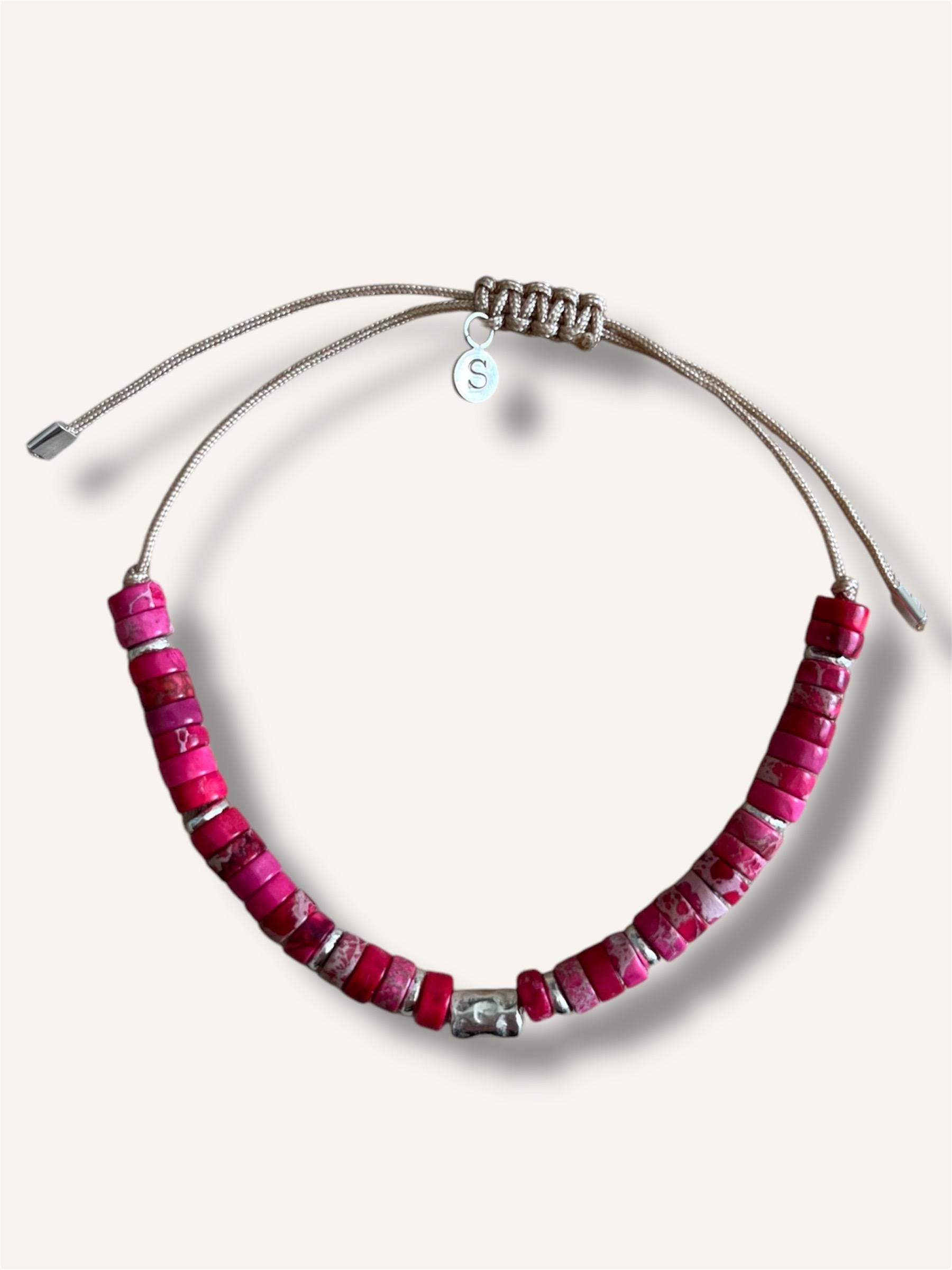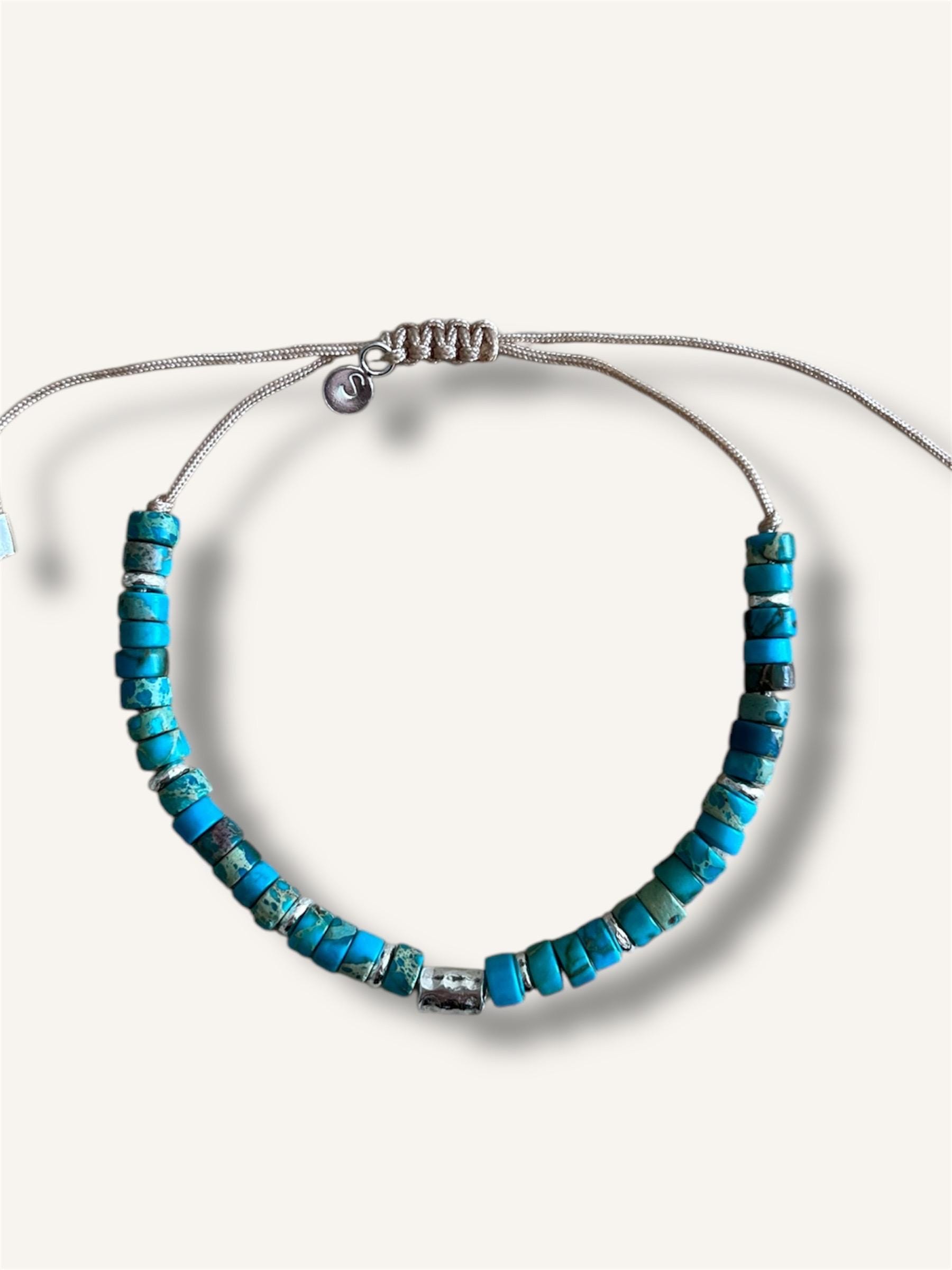• Sand-resistant nylon cord • Heishi stone Sea sediment jasper • 925 silver discs and tubes