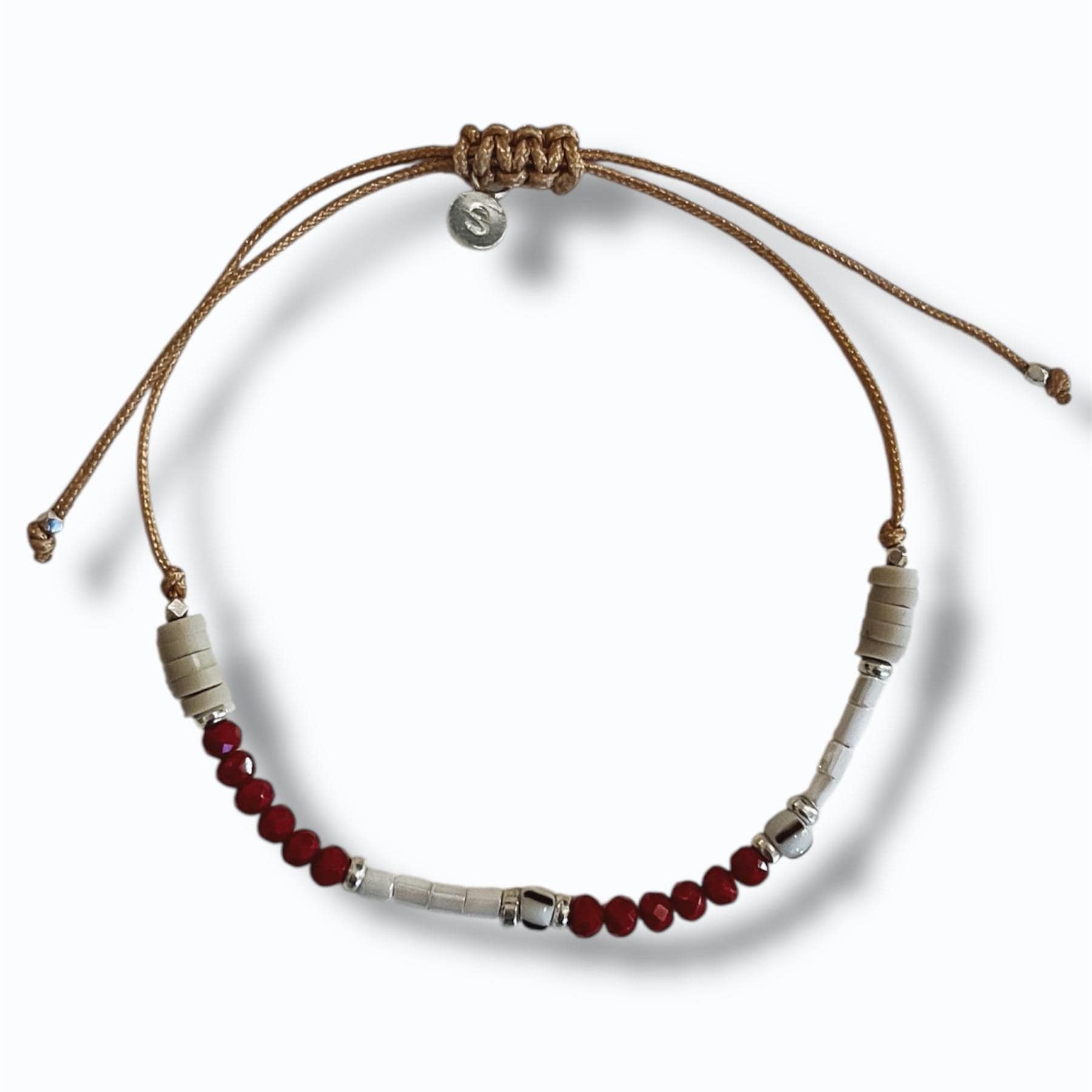 Le bracelet s'adapte à toutes les morphologies grâce à un noeud macramé coulissant.